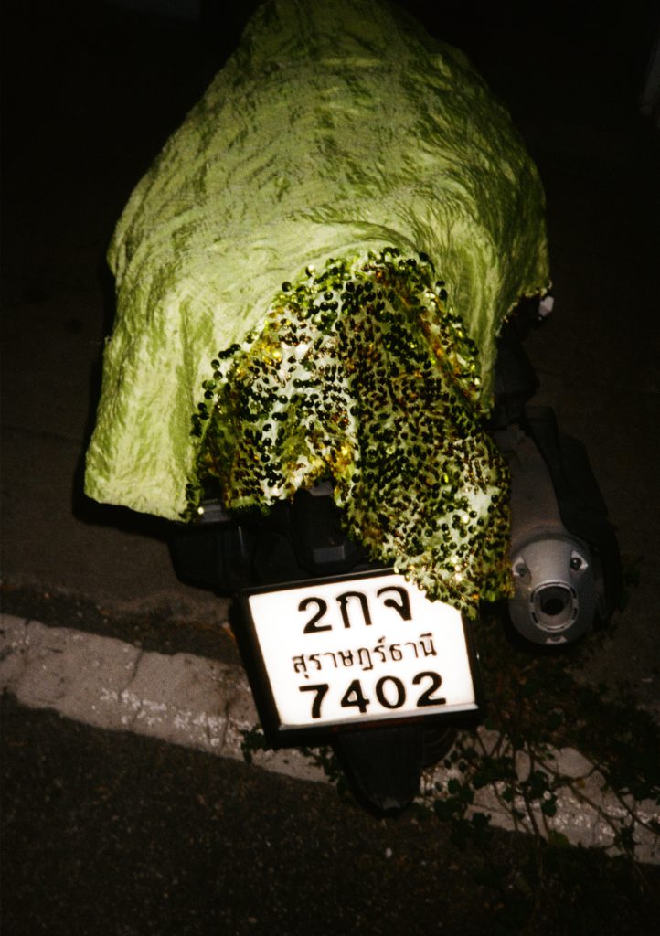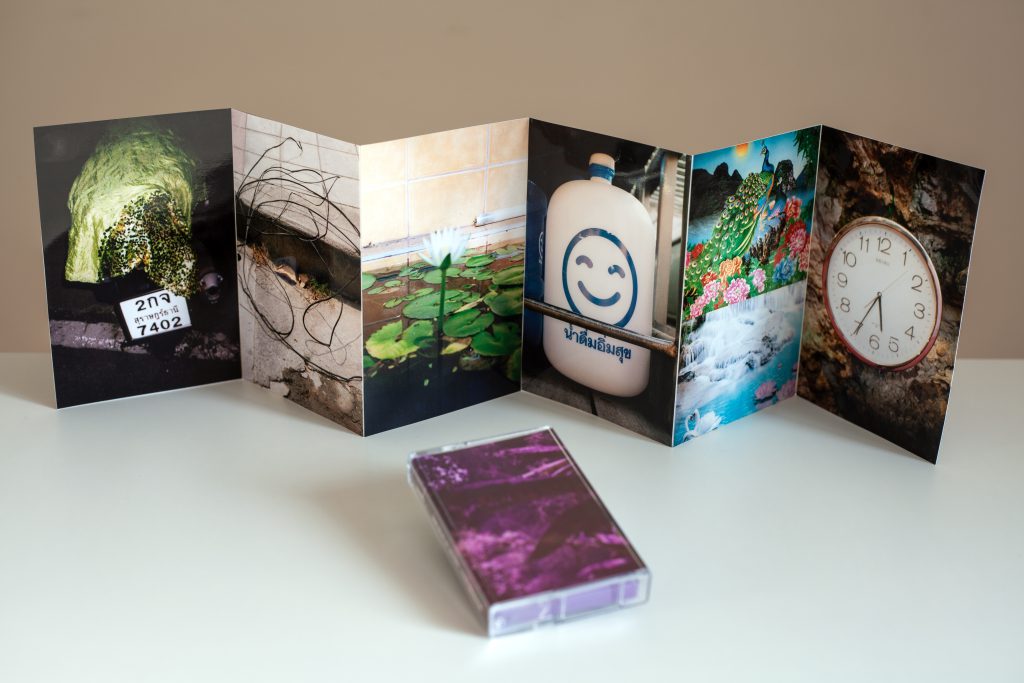 This ambivalence is also reflected in the present work, which consists of a leporello with twelve analog photographs and a sound piece comprising six tracks. The compositions are based on field recordings, primarily captured in the rural regions of northern Thailand and the jungle of Ko Phayam island. Additional recordings were made in the vibrant capital, Bangkok, where electromagnetic radiation from overhead power lines and various electronic devices was made audible. The resulting sounds at times evoke a dystopian atmosphere, directly contrasting with the harmonic tones of nature. These recordings are complemented by altered tape loops sourced from old Thai cassettes from the 1980s, artistically bridging the gap between traditional, partly folkloric music and new, contemporary soundscapes.